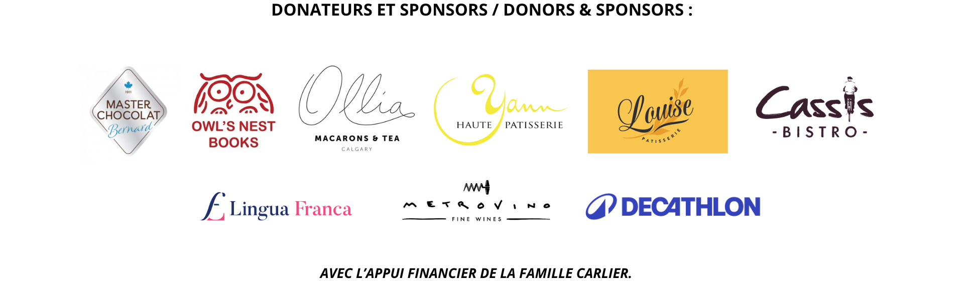 Avec le généreux soutien de : Emmanuel Giry, Consul honoraire de France à Calgary ; Susan Ouriou ; Gérard Carlier.