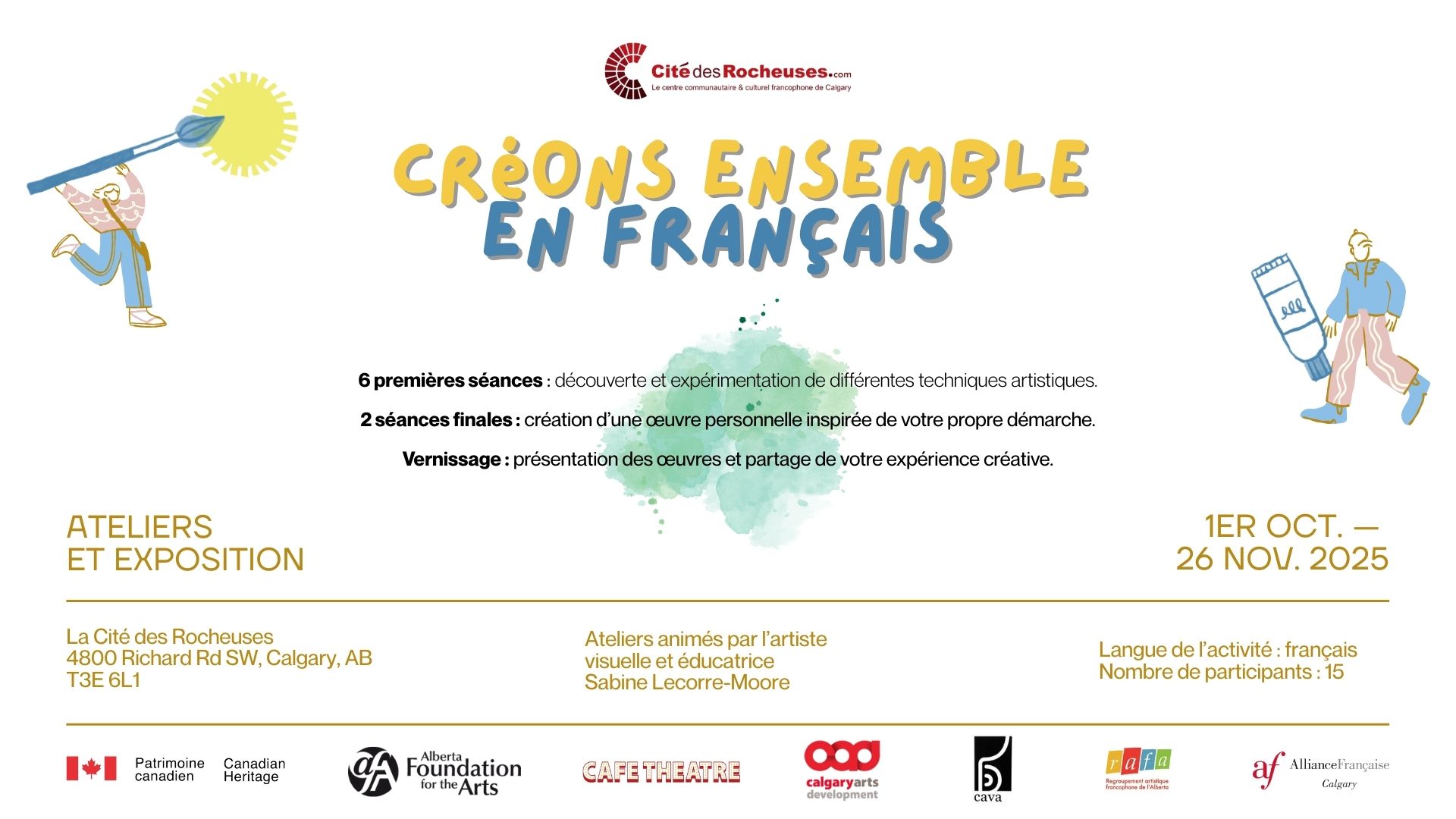 Créons ensemble en français : Ateliers et expositionDate:Oct 1Horaires:18:00 - 20:00Lieu: Théâtre de la Cité des RocheusesVoir plus