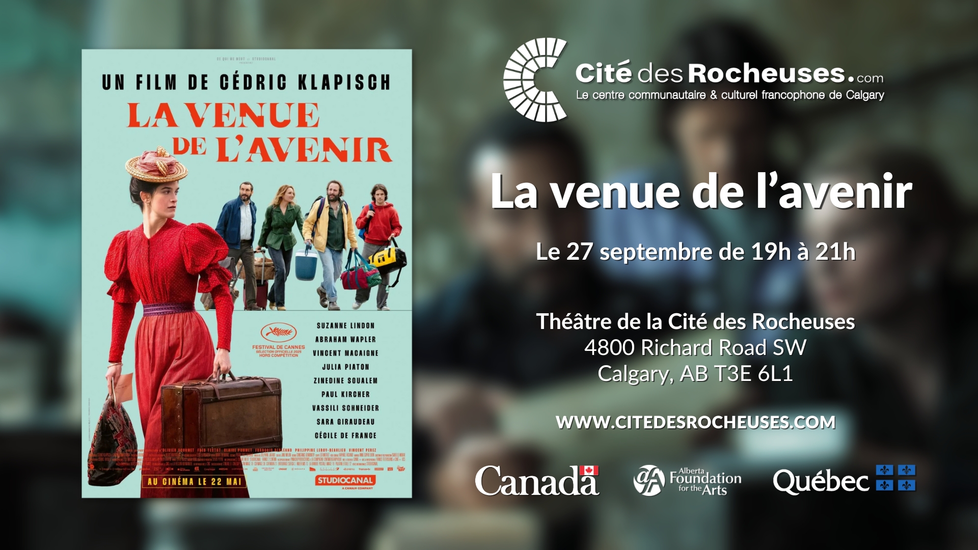 Nos événements passés Cinéma : Moon le Panda / Moon the PandaDate:Sep 13Horaires:15:00 - 16:30Lieu: Théâtre de la Cité des RocheusesVoir plus Cinéma : La venue de l’avenirDate:27 septembre 2025Horaires:19:00 - 21:00Lieu: Théâtre de la Cité des RocheusesVoir plus Cinéma : CIFF : FOLICHONNERIESDate:27 septembre 2025Horaires:21:30Lieu: Cineplex CF CHINOOK CENTREVoir plus Créons ensemble en français : Ateliers et expositionDate:Oct 1Horaires:18:00 - 20:00Lieu: Théâtre de la Cité des RocheusesVoir plus Rencontre : Jeromy FarkasDate:5 octobre 2025Horaires:17:00 - 18:00Lieu: Théâtre de la Cité des RocheusesVoir plus Pub Night au Café Théâtre !Date:9 octobre 2025Horaires:18:00 - 21:00Lieu: Théâtre de la Cité des RocheusesVoir plus Conférence : Repenser l’identité en traductionDate:10 octobre 2025Horaires:18:00 - 19:00Lieu: Théâtre de la Cité des RocheusesVoir plus Soirée littéraire : Altérité du/en soiDate:10 octobre 2025Horaires:19:30 - 20:30Lieu: Théâtre de la Cité des RocheusesVoir plus Théâtre : En travers (sortie de résidence de travail)Date:11 octobre 2025Horaires:14:00 - 15:00Lieu: Théâtre de la Cité des RocheusesVoir plus